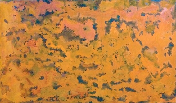 Tony Reason creates pictures from metal oxides that slowly develop in a complex oxidation process. By specifying shapes and patterns, he steers the material's own dynamics towards an ordered structure.