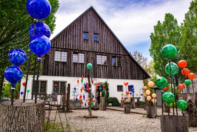 Im westlichen Allgäu befindet sich das Glasmacherdorf Schmidsfelden, ein ganz besonderes Kleinod, das seinen Besuchern die Kunst des Glasblasens hautnah präsentiert. Hier kann man den Glasmachermeistern bei ihrer Arbeit zusehen, in den Ateliers traditionelle sowie moderne Glaskunst bestaunen und auch Kunstwerke erwerben. Die Gründung der Glashütte Schmidsfelden geht bis ins Jahr 1622 zurück und seitdem hat sich die Glasmacherkunst stetig weiterentwickelt.