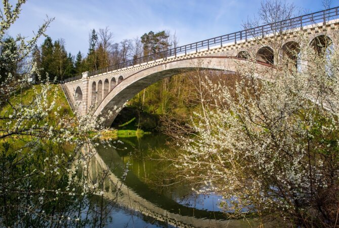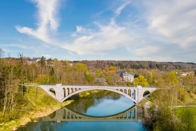 Nach einer umfassenden Sanierung von April 2017 bis März 2019 erstrahlt die Illerbrücke nun in neuem Glanz. Das harmonische Zusammenspiel von Architektur und Landschaft sowie der charakteristische Hauptbogen und die Konsolköpfe machen sie zu einem architektonischen Juwel. Dieses inzwischen denkmalgeschützte Kleinod weist eine Länge von 90 Metern und eine Höhe von 13 Metern auf und fügt sich harmonisch in die umgebende Illerlandschaft ein.