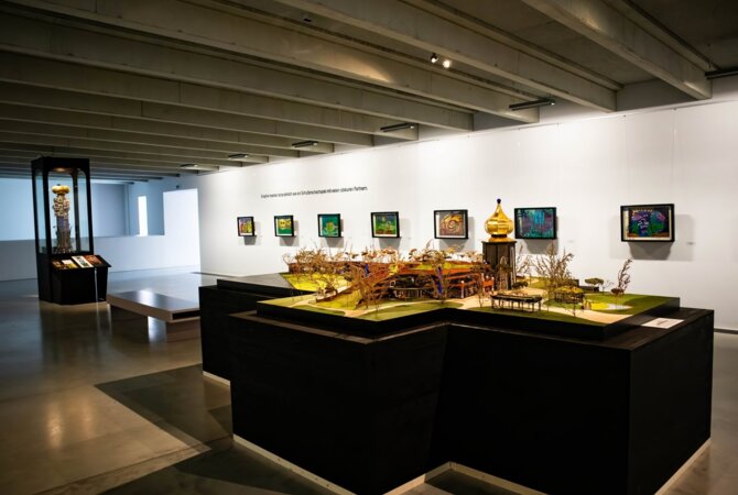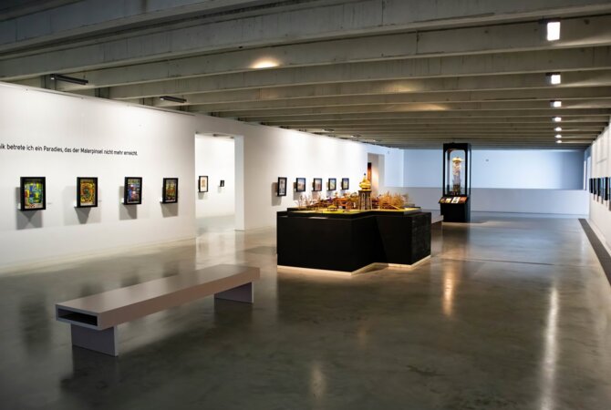Das Museum zeigt auf knapp 2000 qm wechselnde Ausstellungen mit Werken des international bekannten Diether Kunerth und anderer zeitgenössischer Künstler. Die Ausstellungsräume sind bewusst schlicht gehalten, um die Kunst voll zur Entfaltung kommen zu lassen. Neben namhaften deutschen und internationalen Künstlern wie Friedensreich Hundertwasser bespielen auch herausragende bildende Künstler in Einzelausstellungen die Fläche, wie zuletzt Markus Lüpertz im Jahr 2019.
